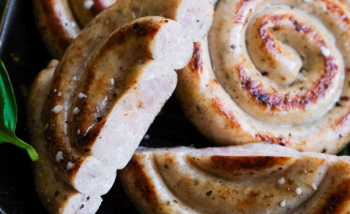 Состав : филе ЦБ, свинина, молоко сухое, вода,шпик,специи, молочный белок,соль, крахмал картофельный,ароматизатор мясной, стабилизатор (Е450),усилитель вкуса( Е621), антиокислитель (Е316,Е331,Е262), загуститель(Е407,Е412,Е415,Е425,Е401).